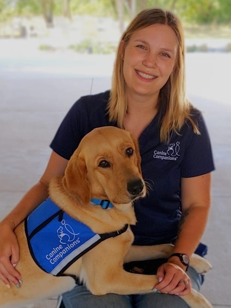 [00:01:06] Aubree: So, in 2016 I started with Canine Companions, and that’s where I started my apprenticeship. Four years later I became an instructor. And then now I’ve moved into this role, which is the client services program manager, now I get to not only work with applicants, but the folks who are placed with the dogs and get to see kind of the start of their journey and how they’re able to be long-term assisted by these dogs that we train and provide to them, so.
